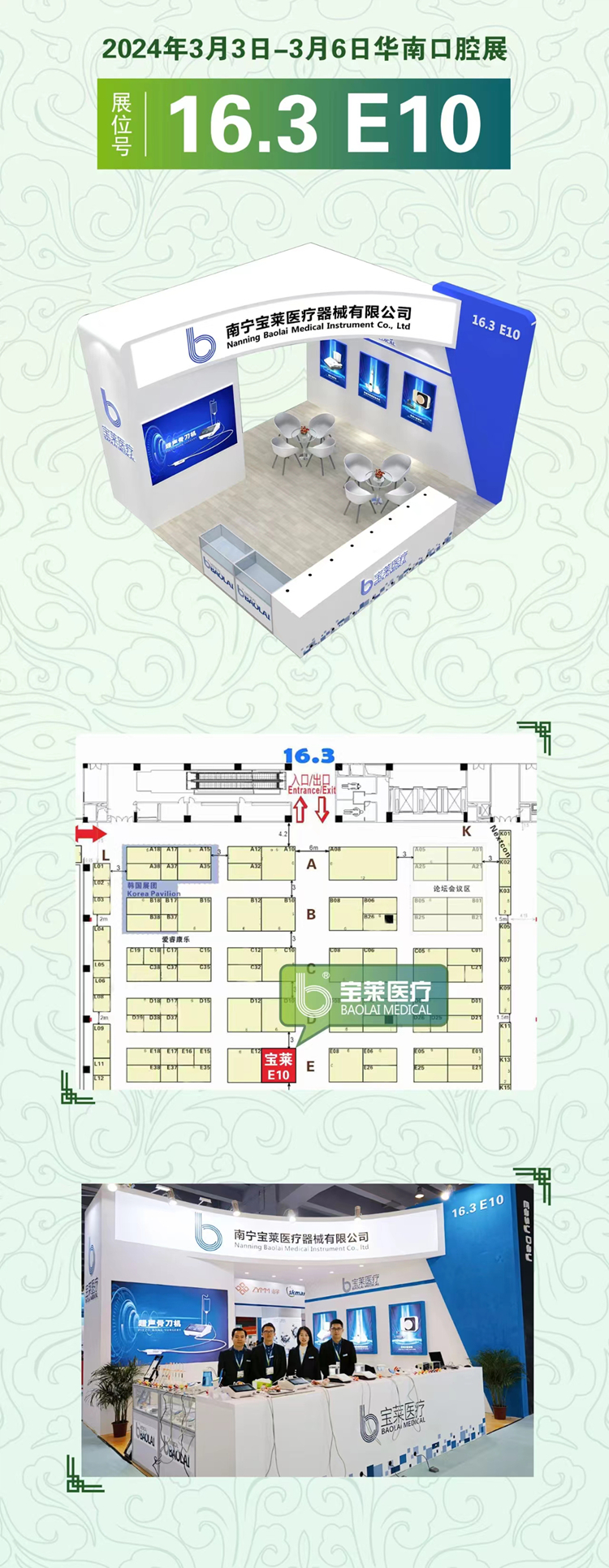 Dental South China 2024 was held in Area C of the Canton Fair exhibition hall on March 3-6, which is the first time that Baolai Medical participated in this dental event after four years since the outbreak of COVID-19 pandemic. At this exhibition, Baolai Medical's new products including piezo bone surgery, solid insulation super high frequency dental X-ray machine, implant stability meter, latest and hot sale ultrasonic scaler model P8L were showed together, attracting the attention of many loyal fans and new&old distributors. Everyone felt happy to try the long-awaited our new products.